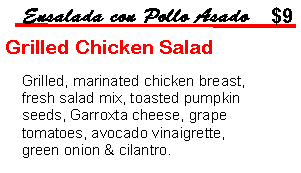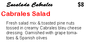 Dressings: Manchego Peppercorn, Raspberry Sherry Vinaigrette, Avocado Vinaigrette, Cabrales Bleu Cheese & Caesar